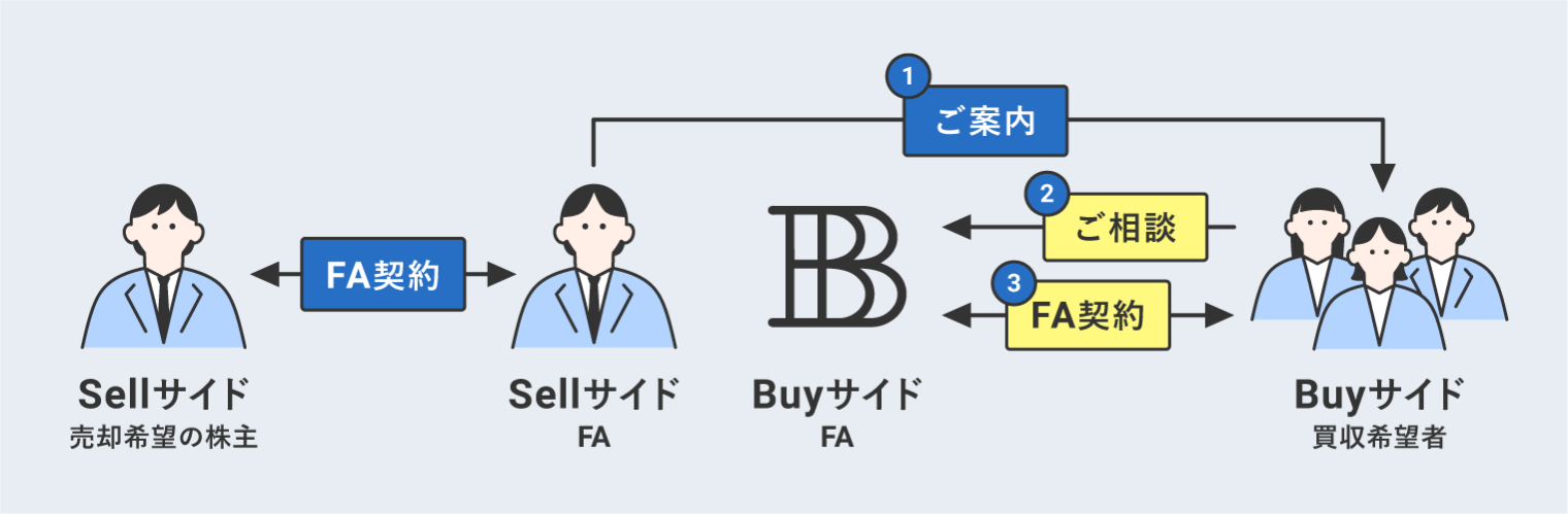 買い手側のFAとして、弊社がご依頼をいただくパターンは主に以下の2パターンです。
