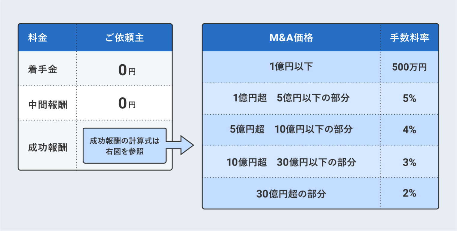 成功報酬の計算式は、価額帯に応じて手数料率を乗じるレーマン方式を採用しています。