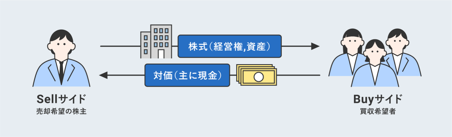 会社売却の方法はいくつかあるのですが、非上場企業のM&Aでは「株式譲渡」という方法が最も一般的です。これは、会社のオーナーが自ら保有している株式を買い手に譲渡することで、経営権を引き継ぐ仕組みです。買い手は、その株式の対価として主に現金を支払います。